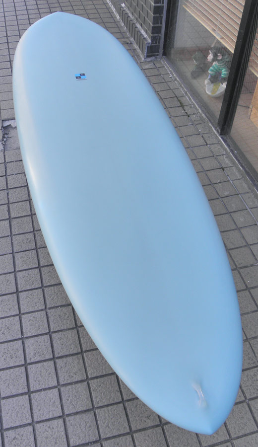 レベルにかかわらず、すべてのサーファーがあらゆるコンディションで楽しめるスーパーファンエッグ、MINIモデルです。ボトムはシャローなシングルコンケーブ~ダブルコンケーブ + VEE。ラウンドノーズのすばやい滑り出しと、シングルフィンのルースでフローなサーフィンが楽しめるシンプルなシェイプです。カラーはライトスレイトブルーのピグメントでラミネートしました。仕上げはウェットサンディングです。シングルフィンの他、トライフィン、クアッド、5フィンボンザーなどのフィンセッティングがあります。