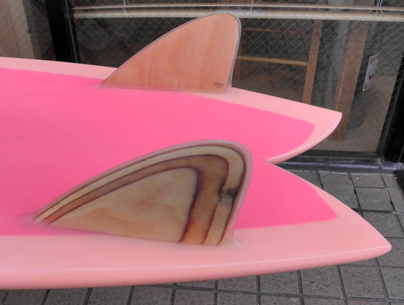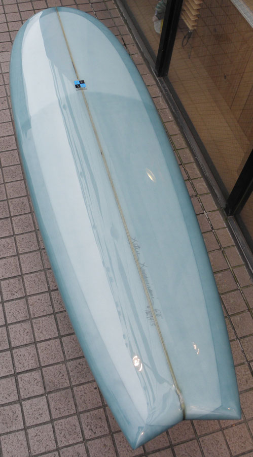 ラウンドノーズにピンテールのきれいなアウトラインです。レングスは、9フィートプラスから、6’8”までお作りすることができます。