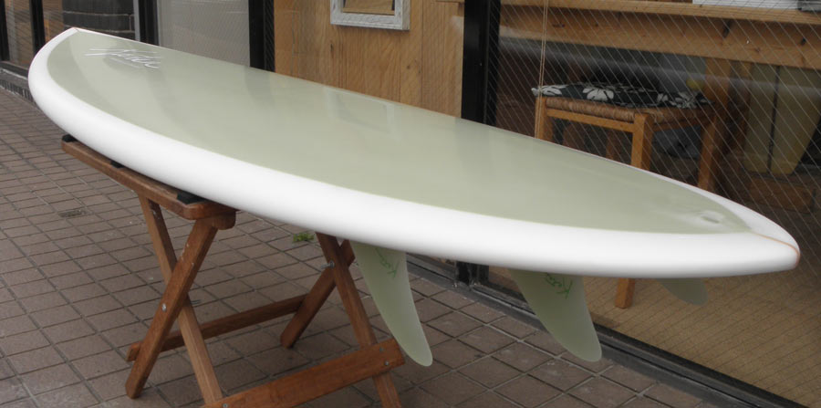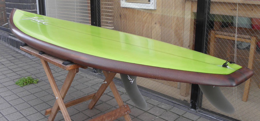 このホットマンゴーは50歳を越えたロングボーダーがリーフの優しい波でも走って楽しめるよう、レングスは長めに幅は広めにとってシェイプしました。