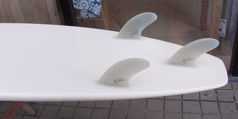 しっかりと入ったロッカー。レールエッジで反応が良い動きを楽しめます。サイドフィンはグラスオンにしました(FCSもOKです。)