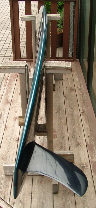 センターにブラックの樹脂を挟み込んだフィン、高密度発泡のカラーフォームを使ったテールブロック、ストリンガー、ヌヒワモデルを忠実に再現。