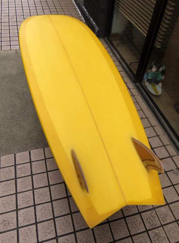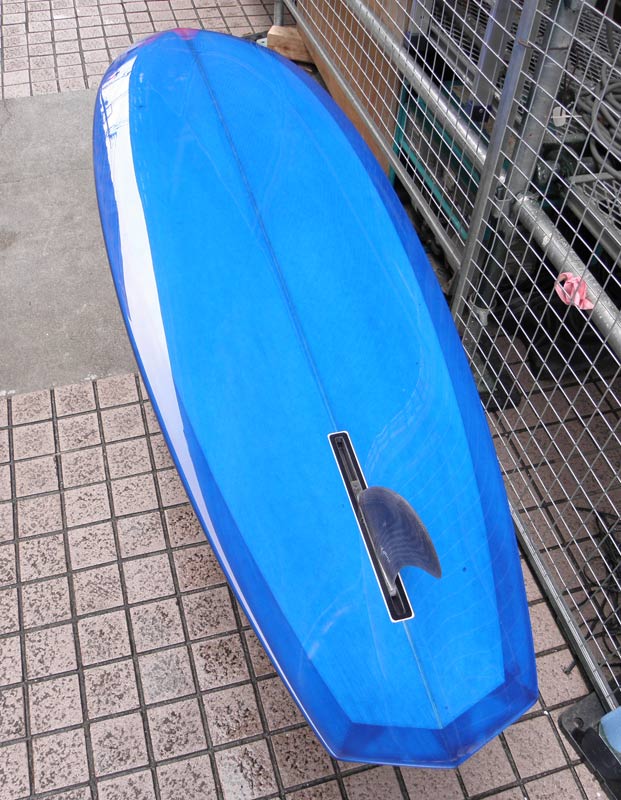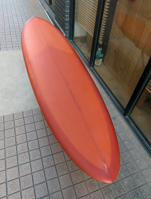 カツカワミナミサーフボード TOTOのストックボードが入荷しました。レングスは9’3”。シンプルなクリアのラミネートに、ボランクロスのサドルを載せました。ソフトレールのログと呼ばれるロングボードとは違うラインでのサーフィンを楽しめる、シェイパーお得意のダウンレールを基本としたロングボードです。ルースしない伸びがあるスムースなターンと、踏み込んだときのパンチーなレスポンスで動きがある波乗りを楽しませてくれます。