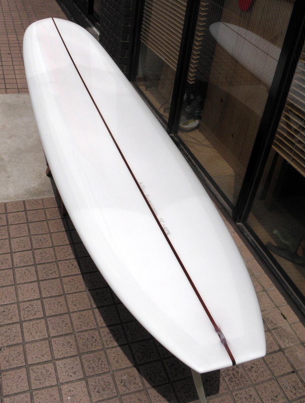 様々な波のコンディションでオールラウンドに楽しめるエッグボードがミニモデルです。このMINIモデルはプリモのコンケーブとレール、そしてエッジを組み合わせたスペシャルシェイプです。コンケーブとレールの組み合わせから生まれるスピードとスムースな滑りで、テールエッジが効いたマニューバはシングルフィンとは思えない動きをしてくれます。ロングボードでしか楽しめないような小波コンディションから、サイズアップした波までカバーしてくれる、とにかく楽しめるエッグボードです。ダークウッドストリンガーを使用し、デッキにボランパッチをプラスしました。