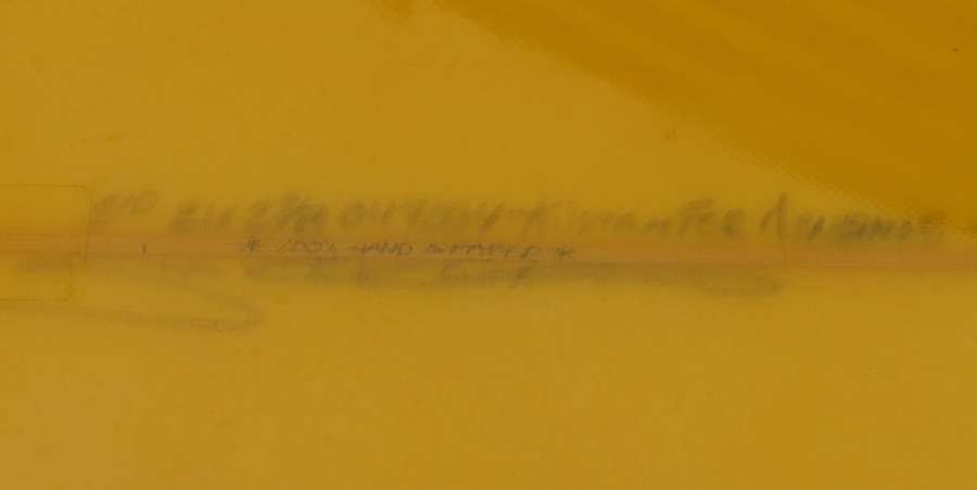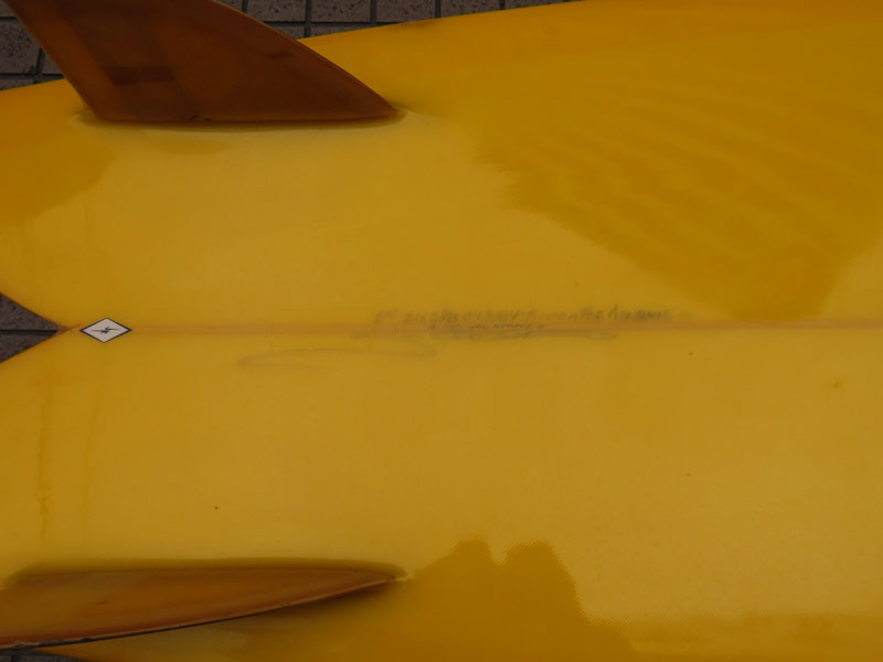クリスがハンドシェイプしたボードのみに書き入れる*100%HAND SHAPED*の文字が書き込まれています。