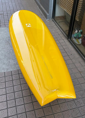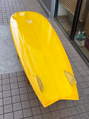 AC SHAPE ニーボードのユーズドです。ステップボトムは、水流の抵抗を減らしスピードアップさせる効果があります。ターンし始めるとステップボトムのテールはルースさを生み出しとても軽く動いてくれます。メネフネオーナーも同じモデルに乗っていますので、自信持ってオススメすることができます。トライフィンなどマルチフィンのニーボードとは違う、ルースさを活かしコントロールするユニークなサーフィンができるのがシングルフィンのニーボードです。コンディションはボトムに浅いヘコミが二つほどあり、デッキにはドルフィンでヒザを着くところにヘコミがあります。キズ、クラッシュはありません。