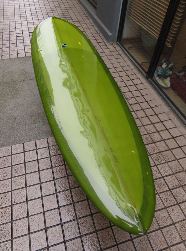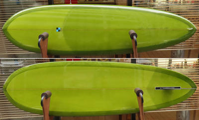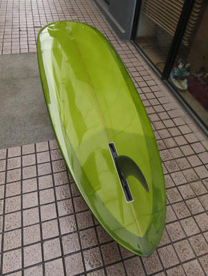 カツカワミナミサーフボードのMINIモデルのユーズドボードです。ボトムはプリモと同じトライプレーンコンボボトムでシェイプされています。幅広いコンディションで楽しめるオールラウンドのシングルフィンエッグです。コンディションはデッキにフットマーク、ボトムはノーズ寄りにヘコミがひとつだけあります。リペアが必要なキズはありません。画像のフィンは付属しません。