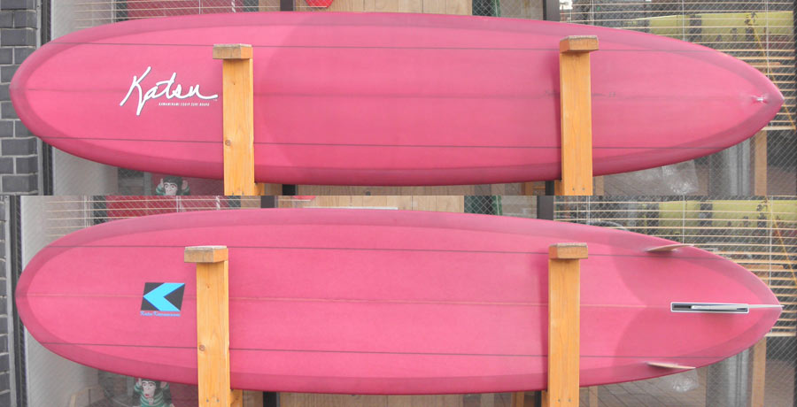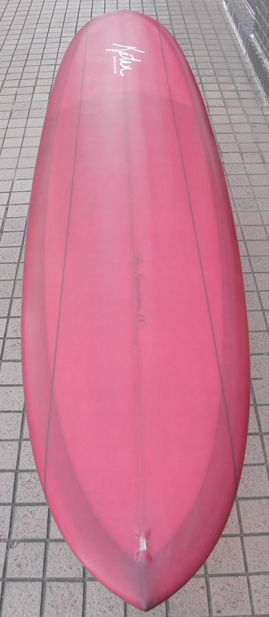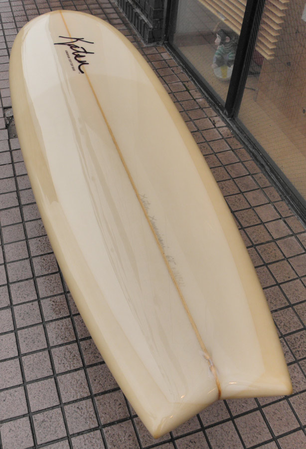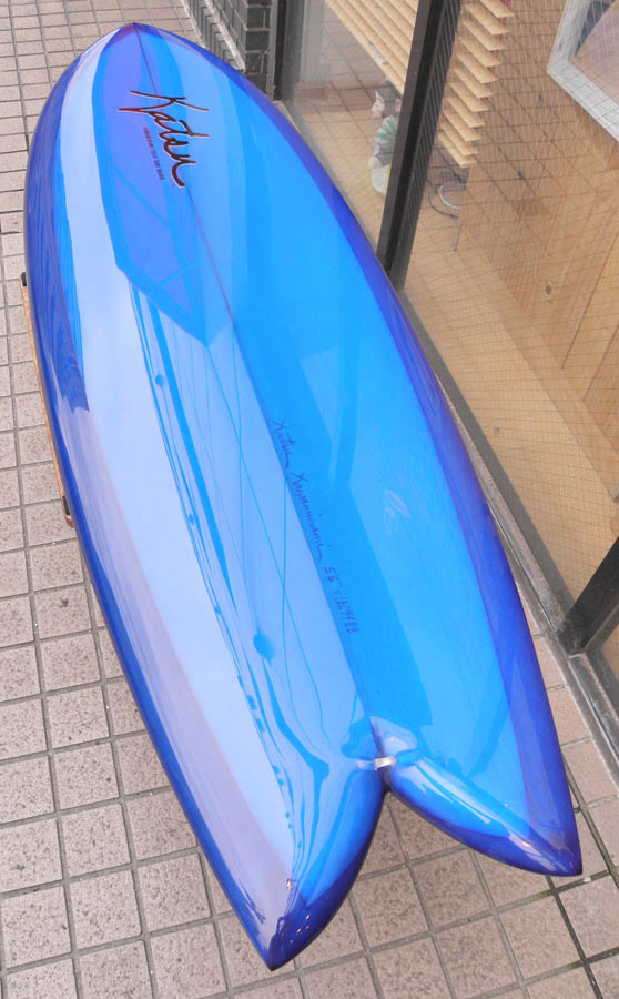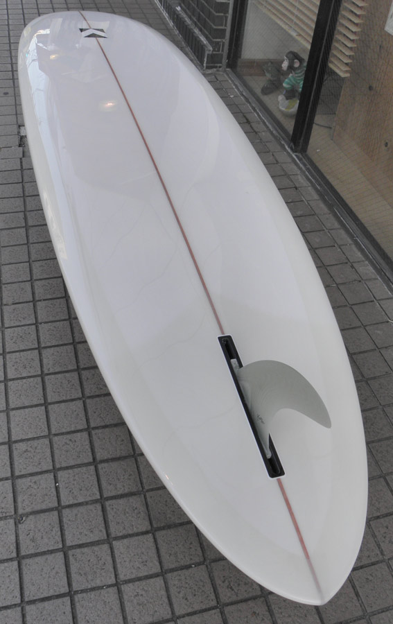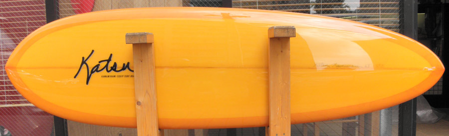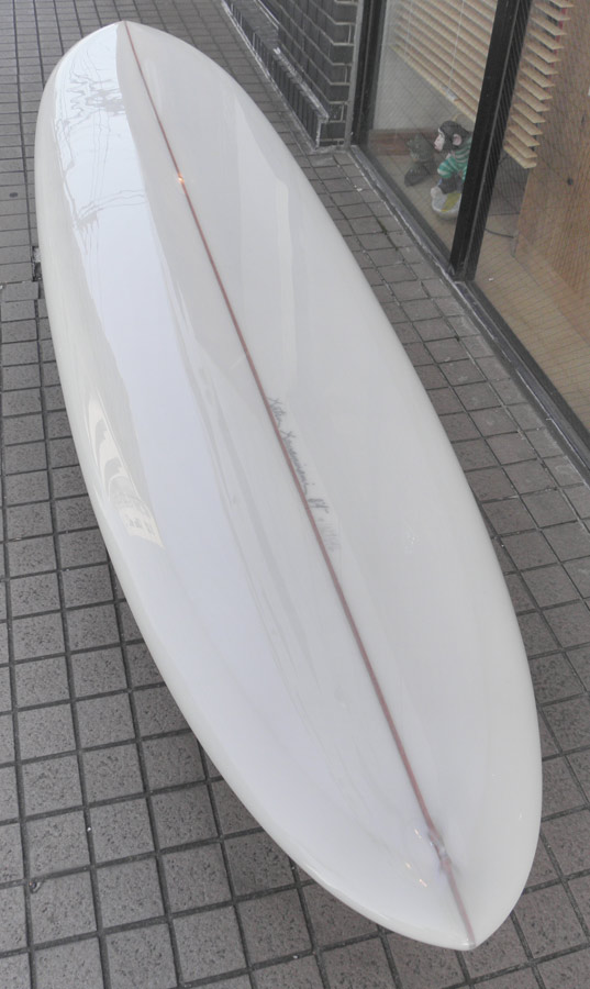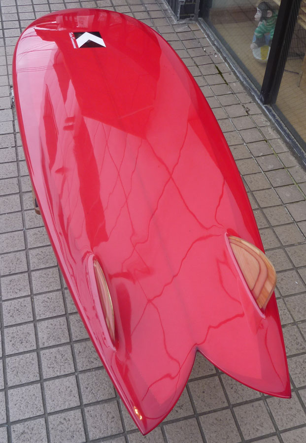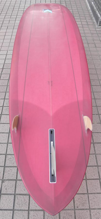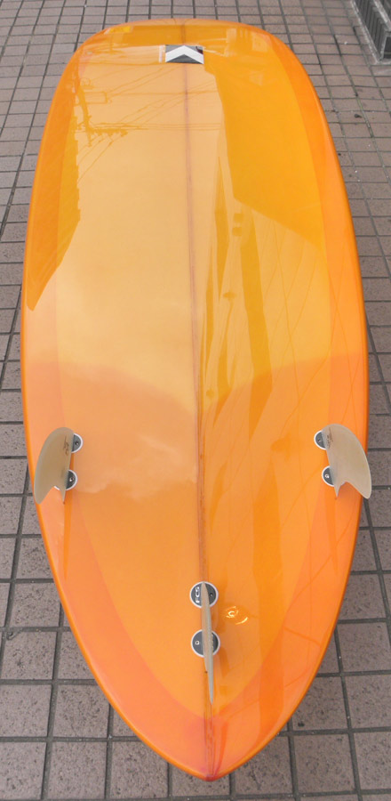 カツカワミナミサーフボードのツインフィンモデル、BOOGIEです。ワイドノーズ、たっぷりの浮力でパドルと滑り出しがとても速いファンなツインです。スピードを付けやすく、素早い波のキャッチからのダウンザラインは他のボードには無い感覚です。そのヒミツはロッカー、レールとボトムの形状、そしてフィンのセッティングにあります。どれもシェイパーである川南活が経験を基に長い時間をかけて作り出したものです。ボリューミーな外観に似合わず回転性は高く、軽快なサーフィンが楽しめます。小波でもよく滑ってくれますが、ショルダーが張った波のフェイスで踏み込んだときのレスポンスは最高の感覚です。