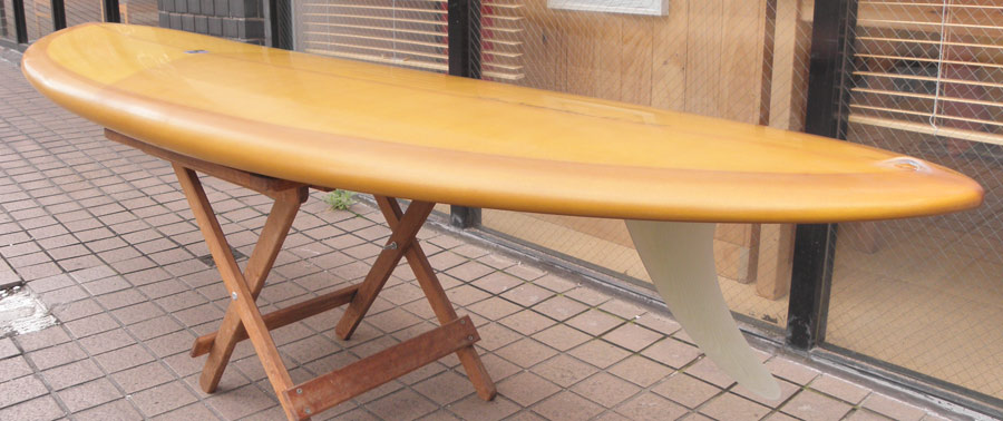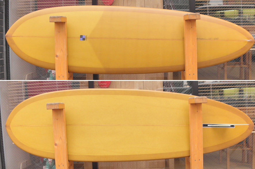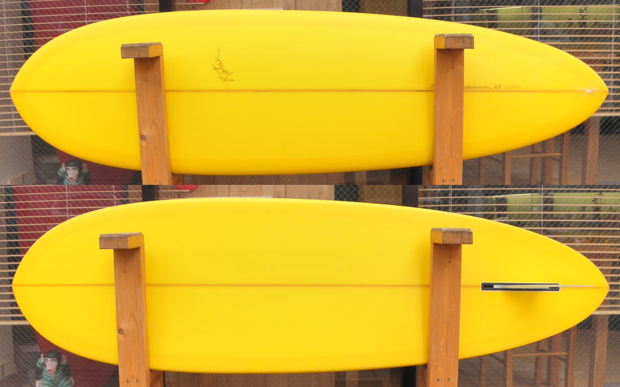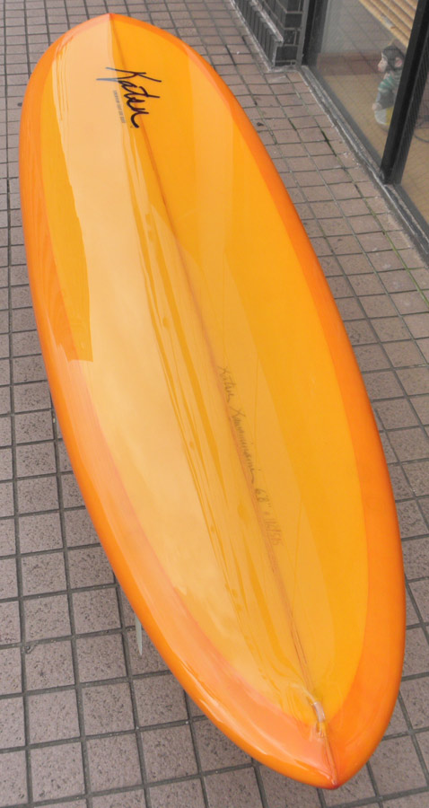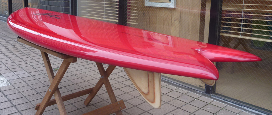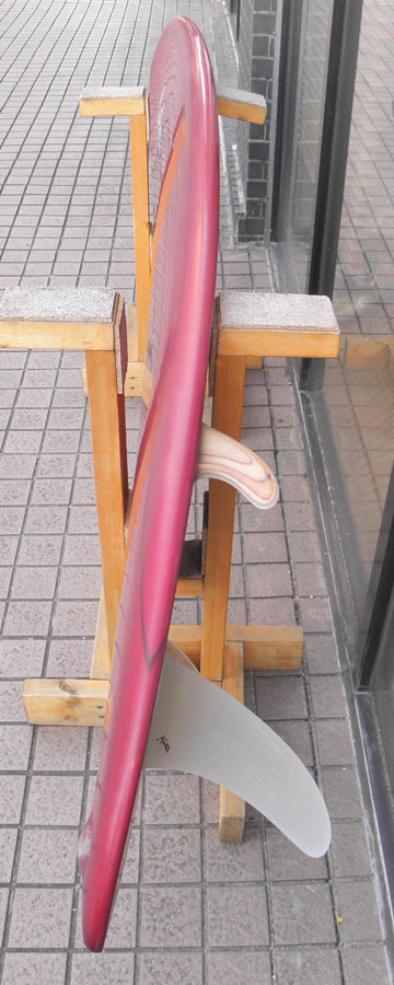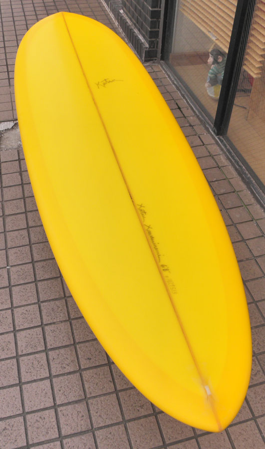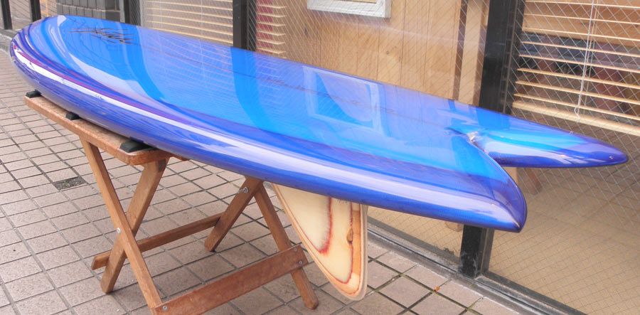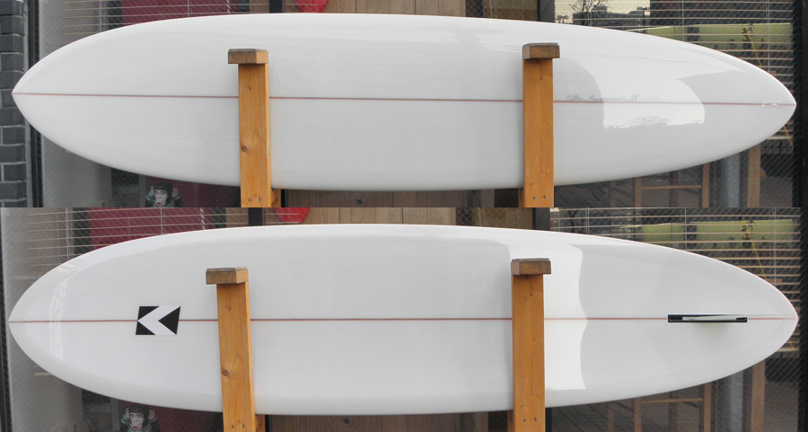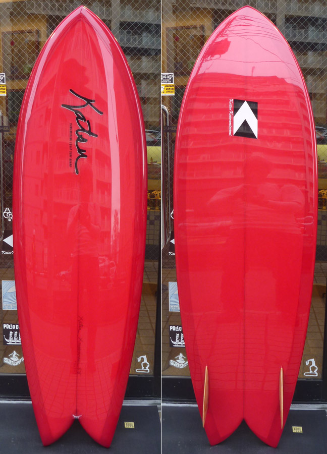 カツカワミナミサーフボードのツインフィンモデル、BOOGIEです。ワイドノーズ、たっぷりの浮力でパドルと滑り出しがとても速いファンなツインです。スピードを付けやすく、素早い波のキャッチからのダウンザラインは他のボードには無い感覚です。そのヒミツはロッカー、レールとボトムの形状、そしてフィンのセッティングにあります。どれもシェイパーである川南活が経験を基に長い時間をかけて作り出したものです。ボリューミーな外観に似合わず回転性は高く、軽快なサーフィンが楽しめます。小波でもよく滑ってくれますが、ショルダーが張った波のフェイスで踏み込んだときのレスポンスは最高の感覚です。