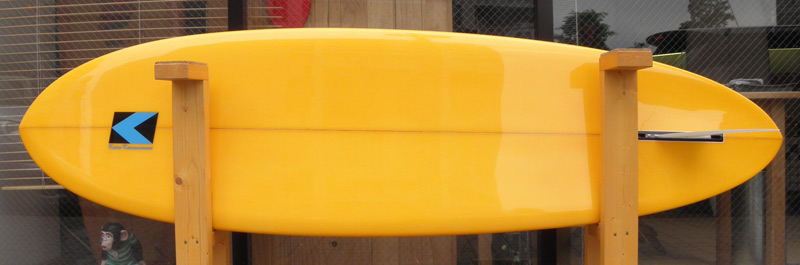 このクアッドはそんなホットマンゴーがベースになった、いわばファンウェイブシェイプです。ロッカーを抑え、幅を広めにとってビーチ、リーフ、波を選ばずにスピード感がある波乗りが楽しめるというコンセプトで作っています。