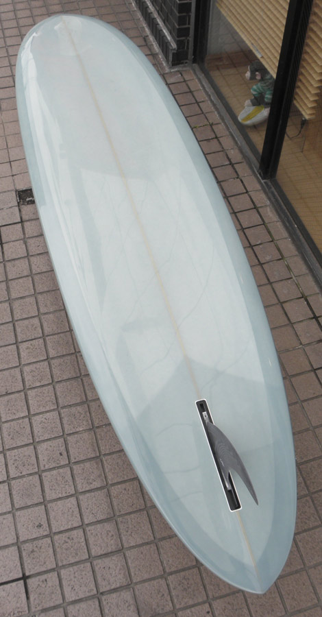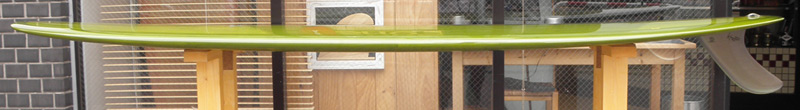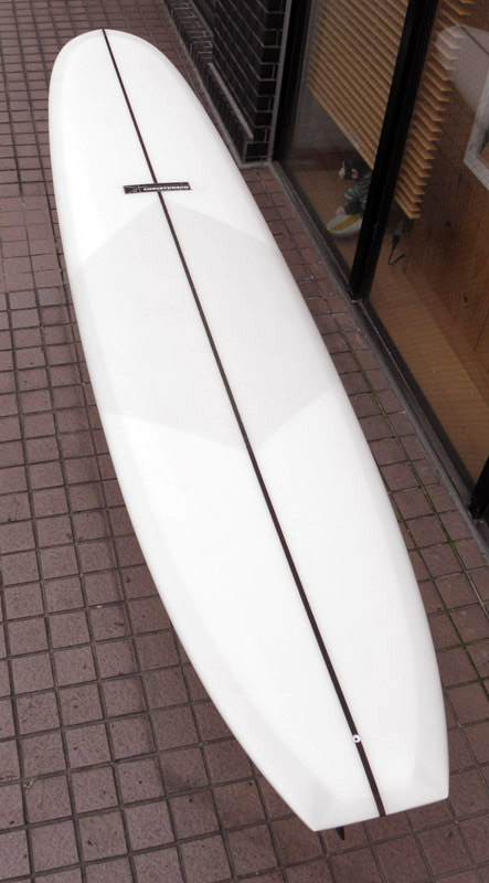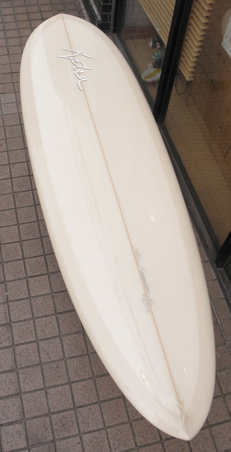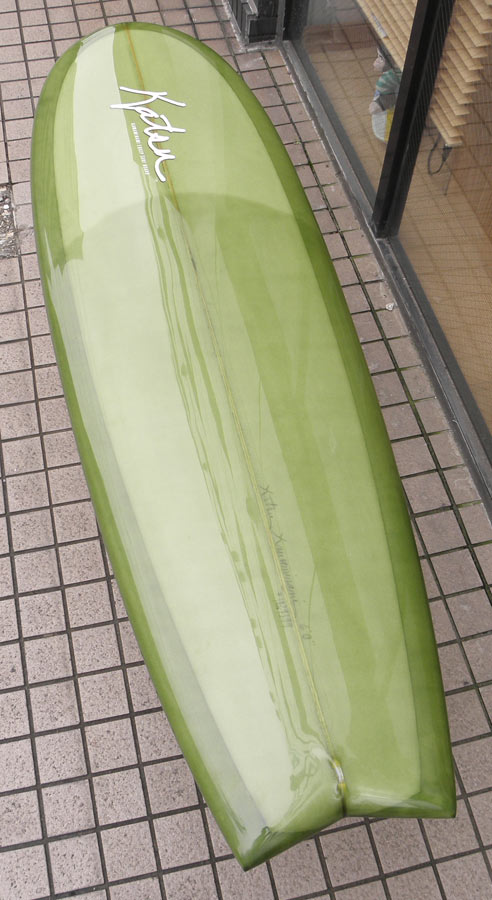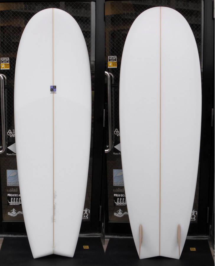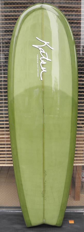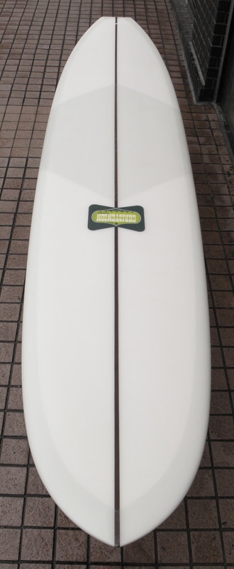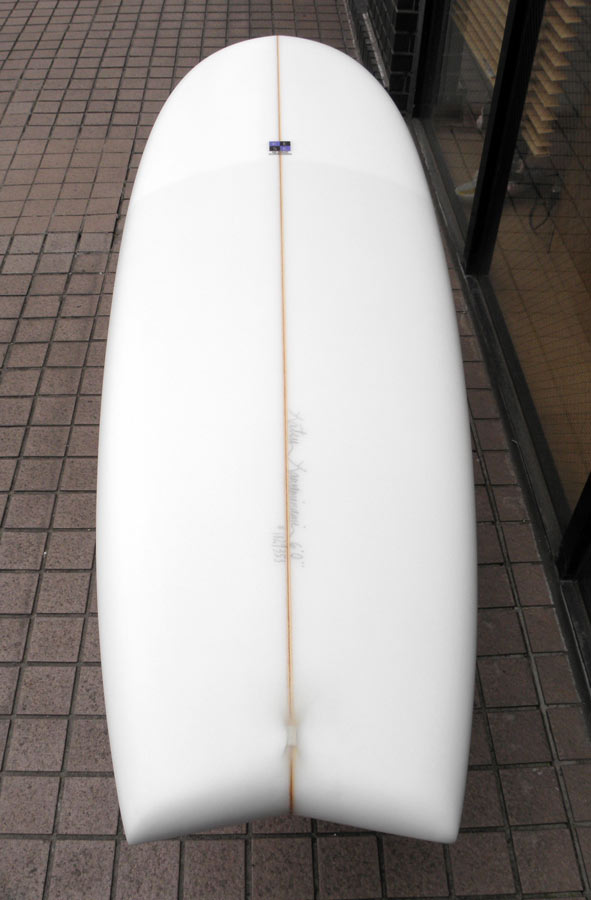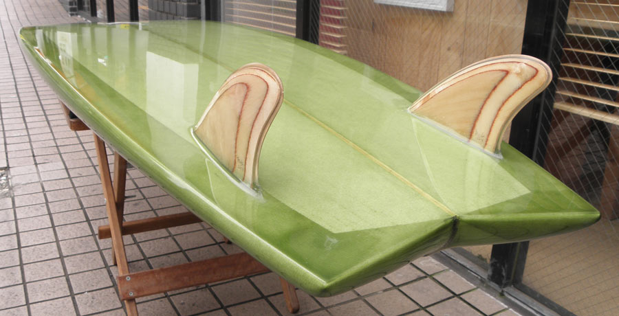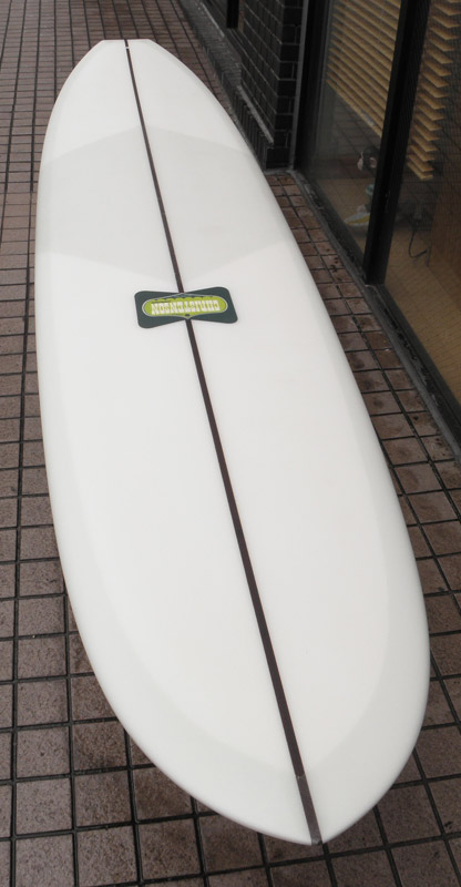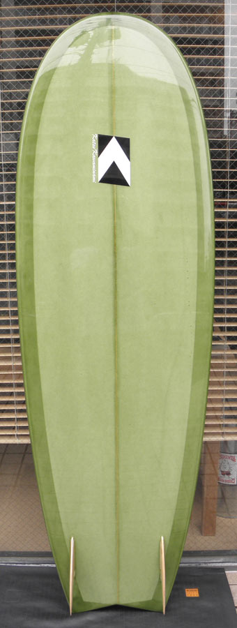 カツカワミナミサーフボードのツインフィンモデル、BOOGIEです。ワイドノーズ、たっぷりの浮力でパドルと滑り出しがとても速いファンなツインです。スピードを付けやすく、素早い波のキャッチからのダウンザラインは他のボードには無い感覚です。そのヒミツはロッカー、レールとボトムの形状、そしてフィンのセッティングにあります。どれもシェイパーである川南活が経験を基に長い時間をかけて作り出したものです。ボリューミーな外観に似合わず回転性は高く、軽快なサーフィンが楽しめます。小波でもよく滑ってくれますが、サイズがある波のフェイスで踏み込んだときのレスポンスは最高の感覚です。