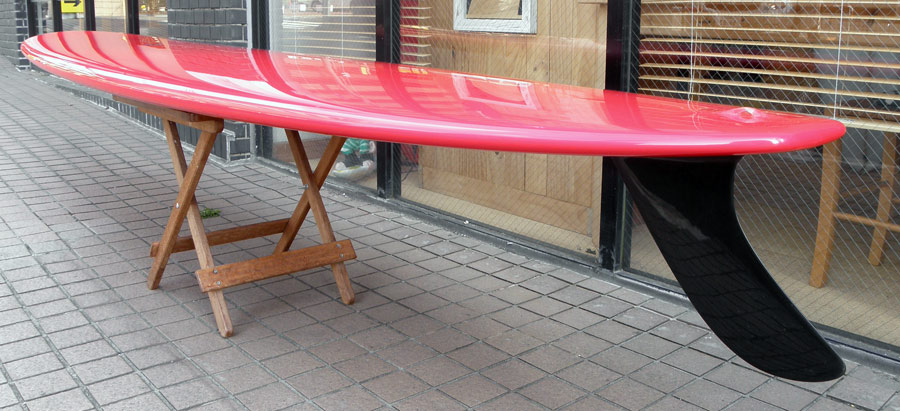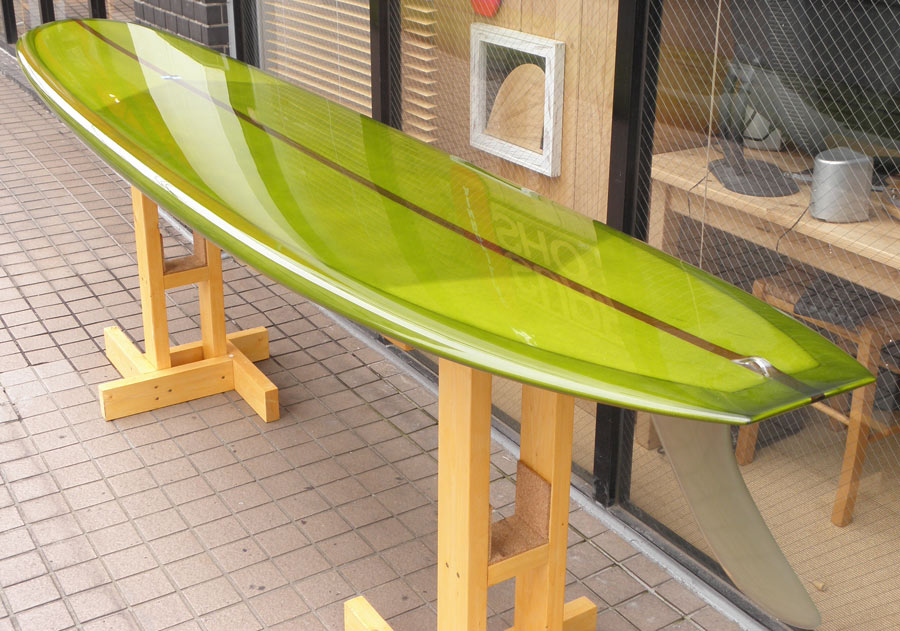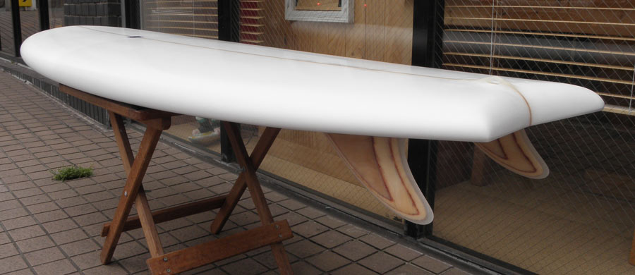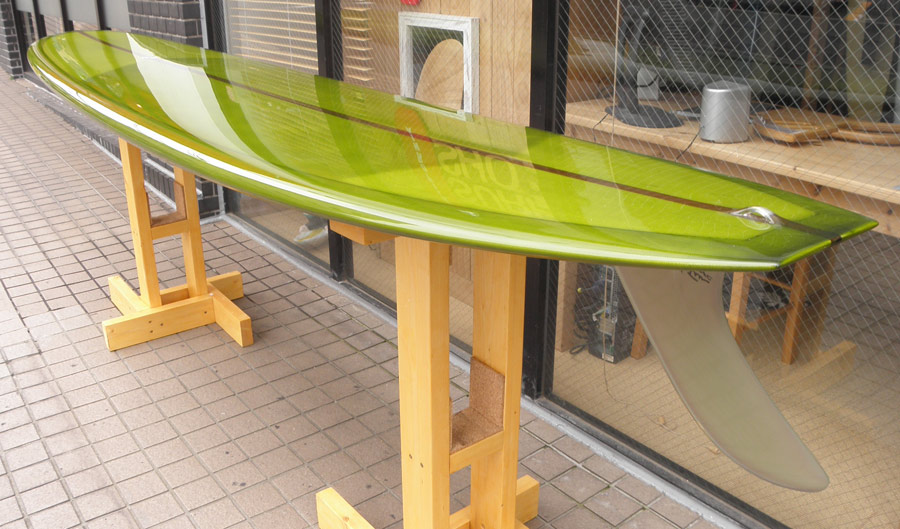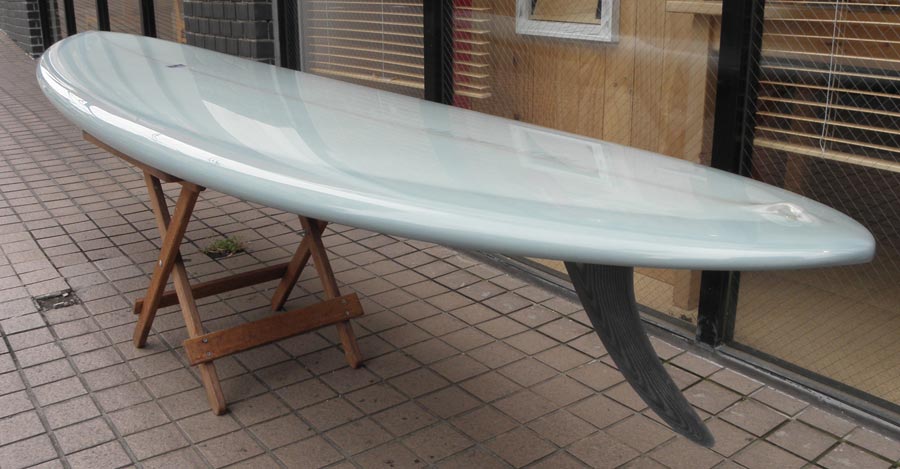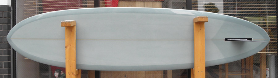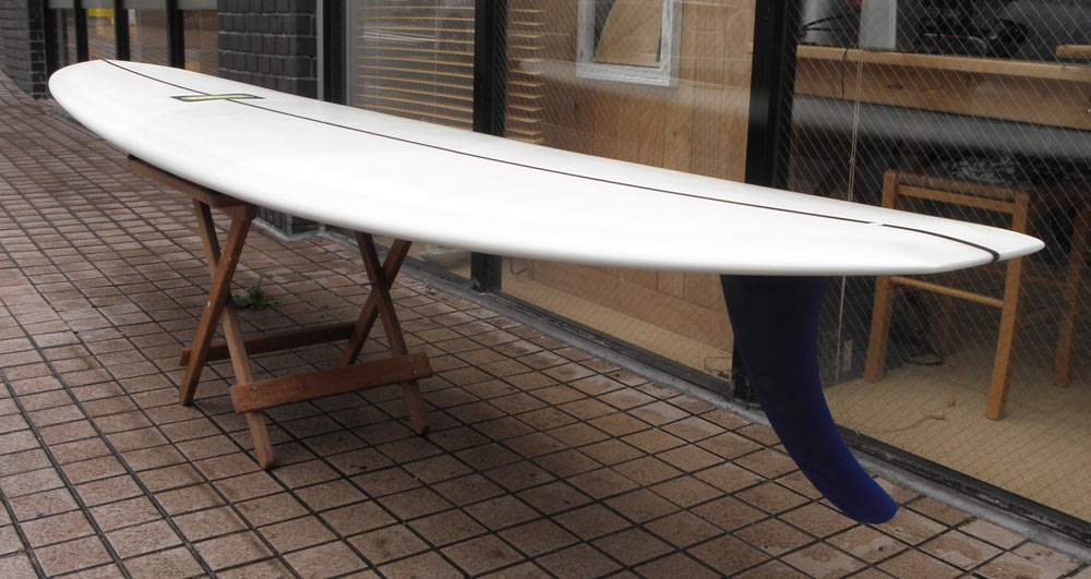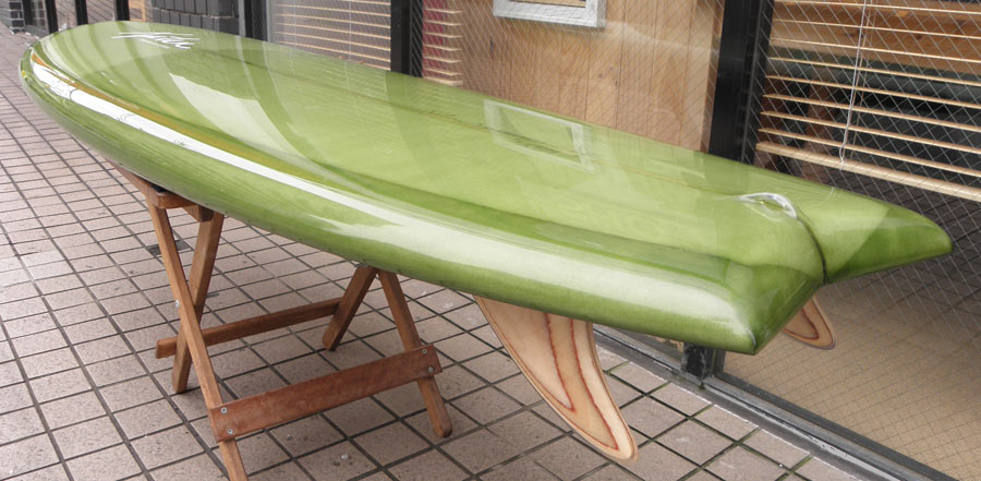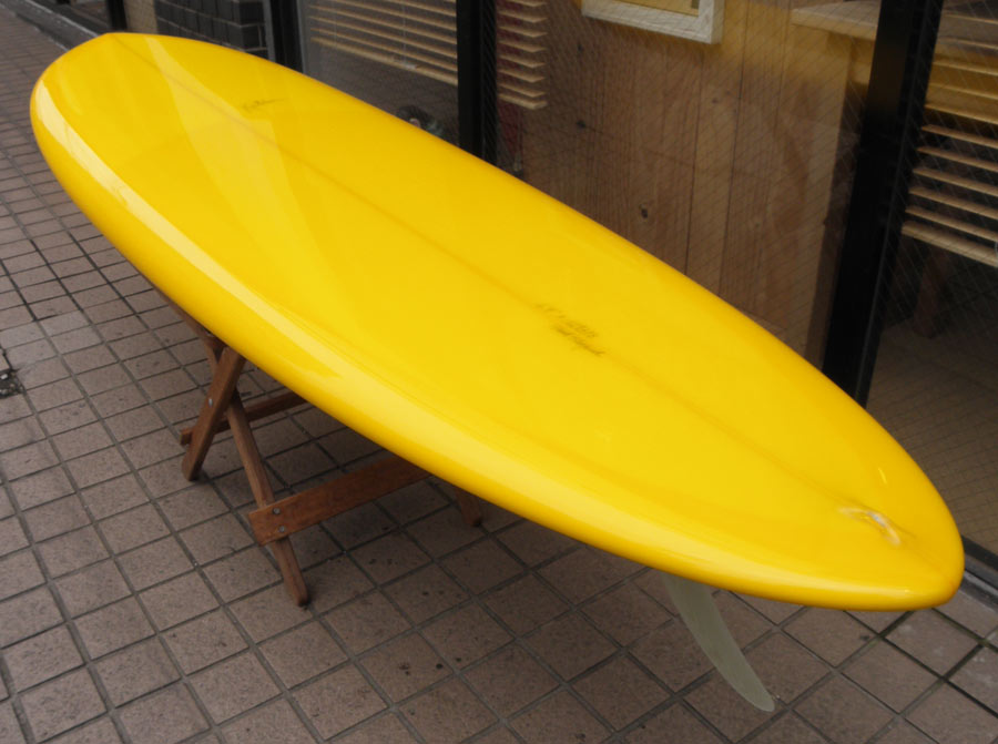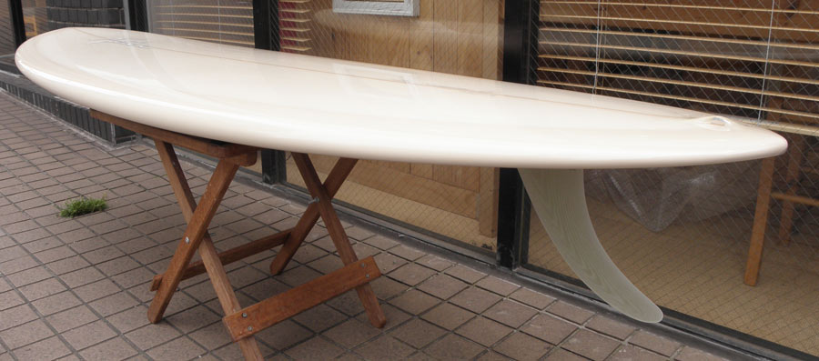カツカワミナミサーフボードのツインフィンモデル、BOOGIEです。ワイドノーズ、たっぷりの浮力でパドルと滑り出しがとても速いファンなツインです。スピードを付けやすく、素早い波のキャッチからのダウンザラインは他のボードには無い感覚です。そのヒミツはロッカー、レールとボトムの形状、そしてフィンのセッティングにあります。どれもシェイパーである川南活が経験を基に長い時間をかけて作り出したものです。ボリューミーな外観に似合わず回転性は高く、軽快なサーフィンが楽しめます。小波でもよく滑ってくれますが、サイズがある波のフェイスで踏み込んだときのレスポンスは最高の感覚です。