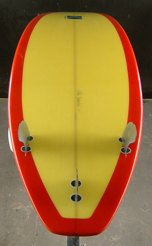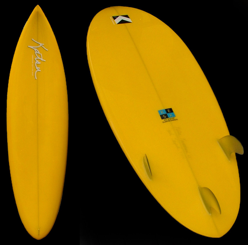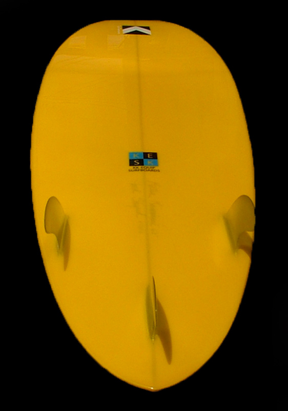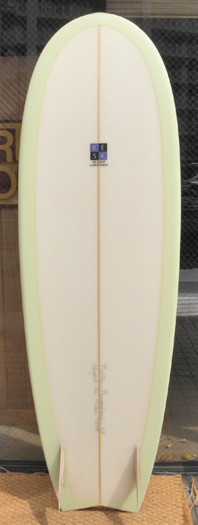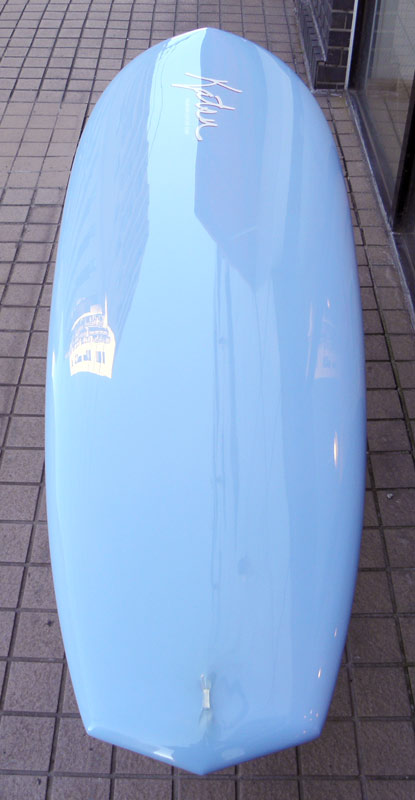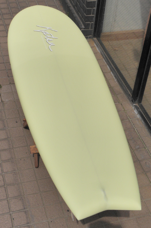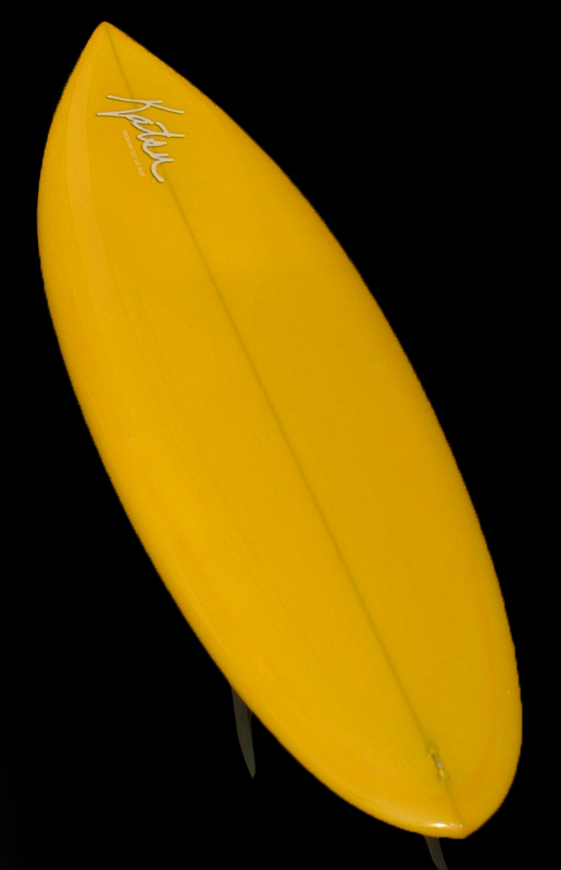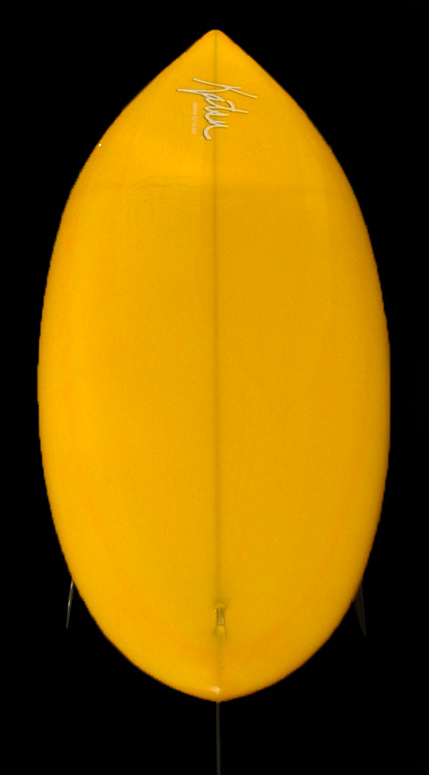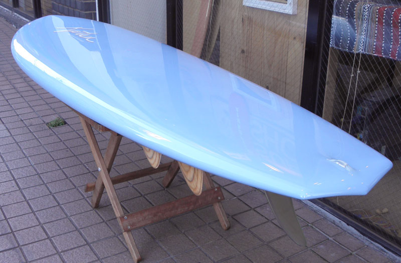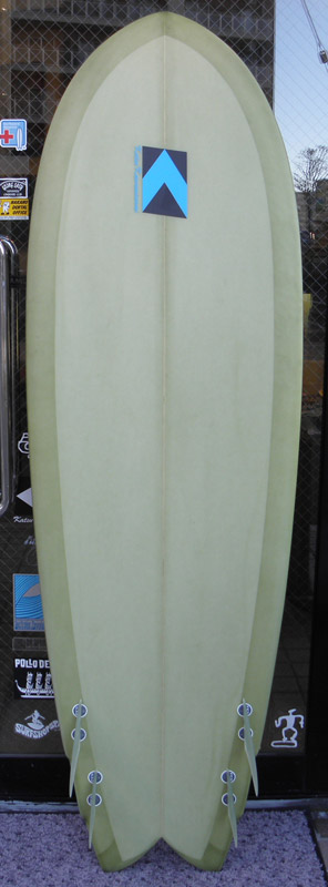70年代初期、リノ・アベリラが鎌倉にもちこんだ超速フィッシュにインスパイアされて作られたツインフィンです。スピードを得るためのロッカー、ボトムのシェイプ、フィンの大きさ、取り付け角度、位置などは、試行錯誤を繰り返した結果のベストセッティングです。ボリュームがあるラウンドノーズは速いパドルとテイクオフを助け、マッシーな小波からサイズアップした波まで、スピードが付けやすくスムースなサーフィンを楽しめるツインフィンです。