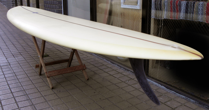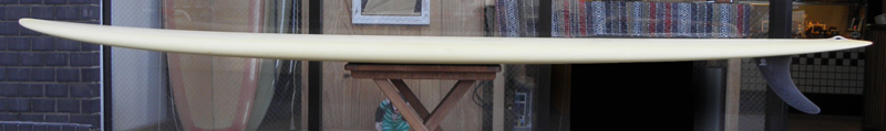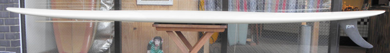 クリス・クリスンテソンのボネヴィルです。フラットなノーズ、パラレルなテールのアウトラインとキック、ノーズコンケーブからフラットを基調にしたボトムのシェイプは安定感を生み出し、安定したノーズライドとトリミングを可能にしています。ドロップニータン、ウォーキング、トリム、ノーズライドとクラシカルなマニューバのためのロングボードです。