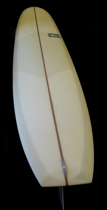 クリス・クリステンソンがシェイプするミニシモンズ「OCEAN RACER」です。カスタムシェイプで6’0の長さでシェイプしました。ロングボードからの乗り換えもスムースなサイズです。ボトムはスプーンノーズから緩いハルボトム、ボードのセンター部少し前方から深くない自然な感じのシングルコンケーブが入り、テールエリアはエッジが立てられています。浮力に余裕を持ってミニシモンズのスピードとマニューバを楽しめるサイズです。フィンはウッドのシモンズキールフィンがグラスオンされています。デッキには8オンスボランのパッチが入っています。クリア、ポリッシュ仕上げ。