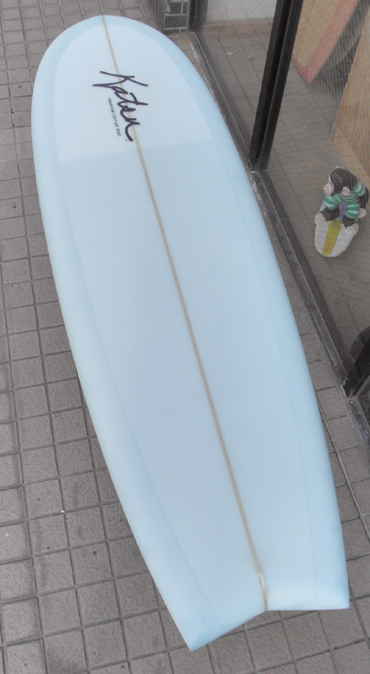カツカワミナミサーフボードのMINI2モデルです。アウトラインはMINIと同じですが、ボトムから緩くまくったレールとコンケーブが組み合わされたトライコンボボトムにシェイプされ、滑らかにすべって軽快に動いてくれるエッグボードです。フィンはいろいろなセッティングが可能ですが、このボードはツインスタビライザーです。風が入ったチョッピー気味のコンディションなど、オールラウンドにいろいろな場面で楽しめるボードです。