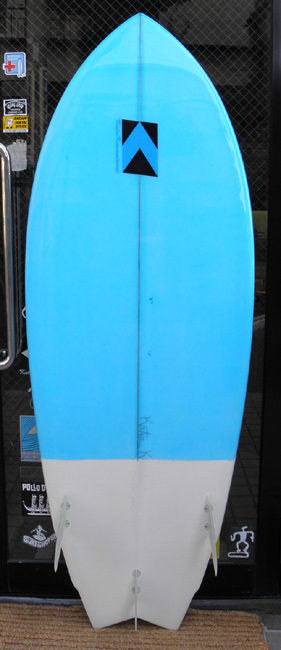 クリス・クリステンソンがシェイプするミニシモンズ「OCEAN RACER」です。ストリンガーレスのブランクスを使用し、ノーズのボリュームを落とした薄いスクープノーズになっています。ボトムはスプーンノーズから緩いハルボトム、ボードのセンター部少し前方から深くない自然な感じのシングルコンケーブが入り、テールエリアはエッジが立てられています。