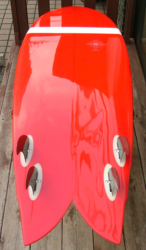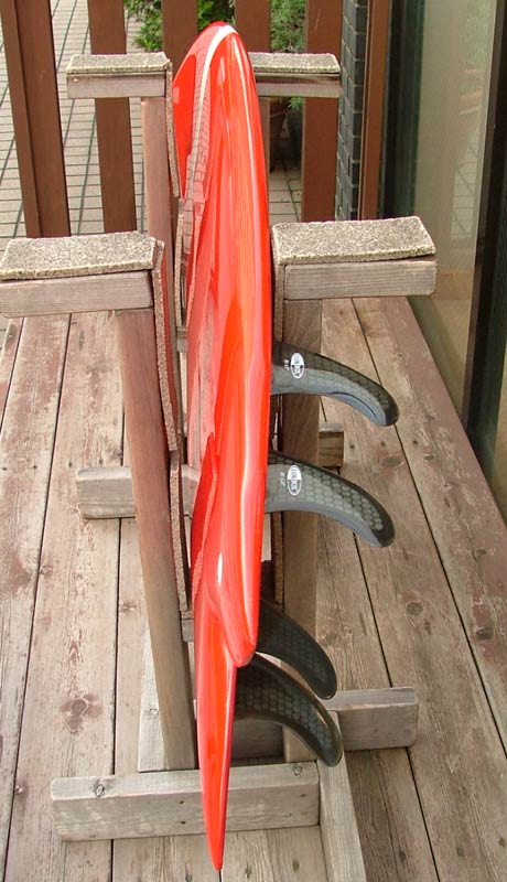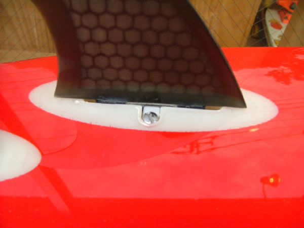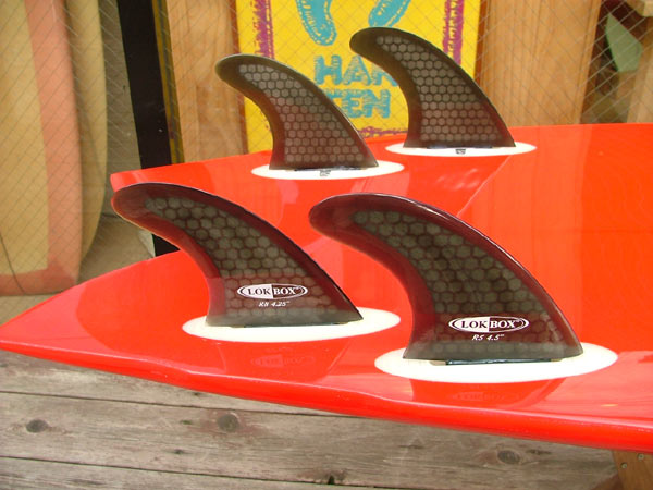 前後にそれぞれ約1/2インチ動かすことができます。両方のフィンを近づければツィンフィンの性格が強くなってきます。コンディションと自分にあったセッティングを見つけ出すのも楽しみのひとつ。