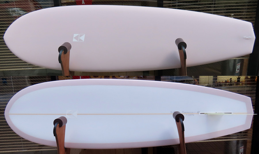 ボトムはフラットなパートを持つゆるやかなロールボトム。安定感があるDフィンと細身のアウトラインの組み合わせは、60年代のヴィンテージボードのフィーリングを楽しめます。今のモダンなクラシックボードに飽き足らなくなってしまった、クラシックフリークに乗ってもらいたいPIGです。
