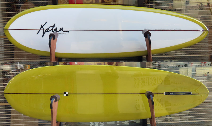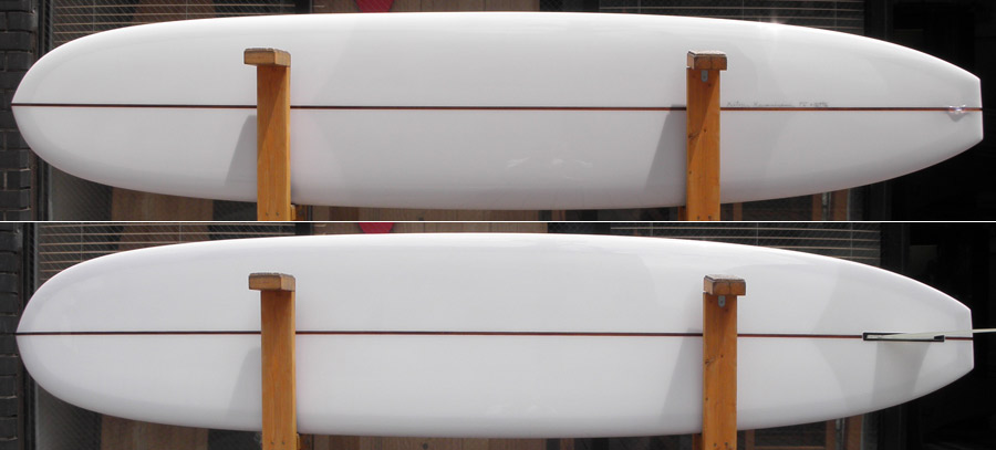 様々な波のコンディションでオールラウンドに楽しめるエッグボードがミニモデルです。このMINIモデルはプリモのコンケーブとレール、そしてエッジを組み合わせたスペシャルシェイプです。コンケーブとレールの組み合わせから生まれるスピードとスムースな滑りで、テールエッジが効いたマニューバはシングルフィンとは思えない動きをしてくれます。ロングボードでしか楽しめないような小波コンディションから、サイズアップした波までカバーしてくれる、とにかく楽しめるエッグボードです。ダークウッドストリンガーを使用し、デッキにボランパッチをプラスしました。